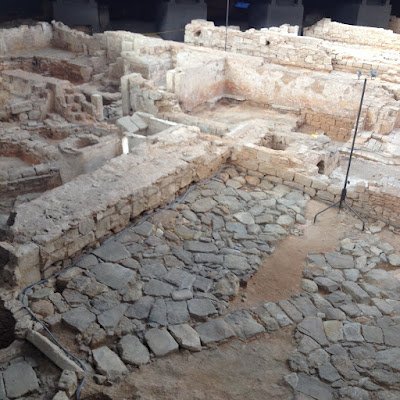 Our next adventures in Barcelona start in the Mercat del Born - the old public market hall. This was a market, but then it went unused for a number of years. When they went to do some renovations they found the ruins of a medieval city. Our tour guide highly recommended it and it was free and pretty interesting.